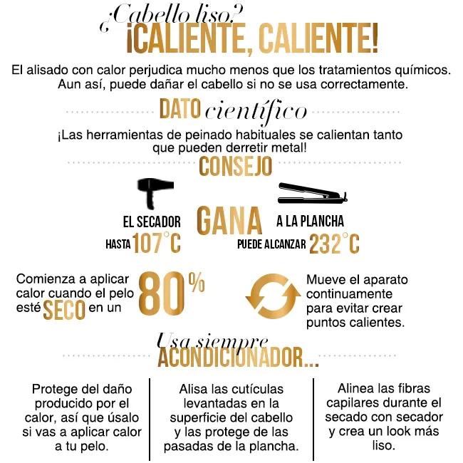 Qué es: se sitúa entre el alisado químico y la queratina brasileña por su nivel de daño. En este proceso se usa tioglicolato de amonio para romper las uniones proteicas y cambiar la estructura y textura del pelo. A continuación, se usan las planchas para alisar el pelo meticulosamente y se aplica un neutralizador a base de peróxido de hidrógeno para rehacer las uniones y fijar la nueva forma del pelo. Se prohíbe mojar, recoger e incluso poner el pelo detrás de las orejas durante las 48 horas posteriores al tratamiento para evitar alterar la forma del pelo. ¡Se necesita mucha disciplina!